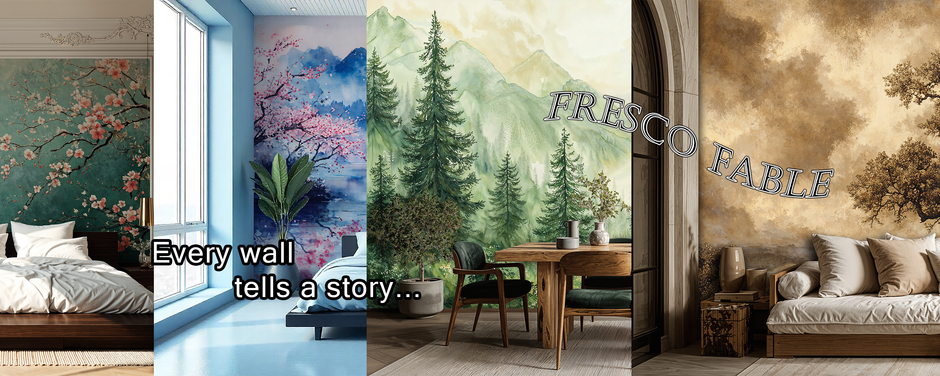 Misty Forest Landscape Wallpaper Mural, Scenic Nature Wall Mural for Cafe and Restaurant Interiors